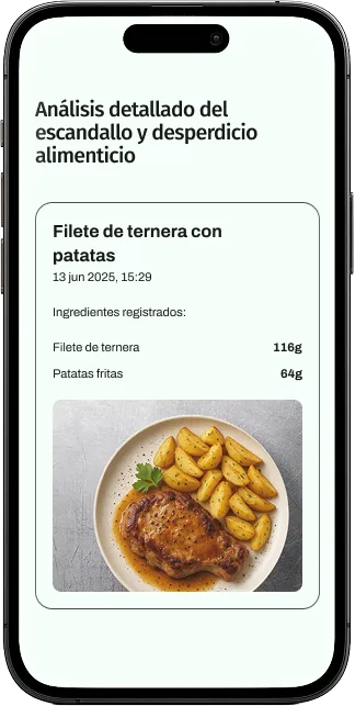 Nuestra app analiza cada plato en tiempo real y convierte los datos en recomendaciones prácticas para ahorrar costes y ser más sostenible.